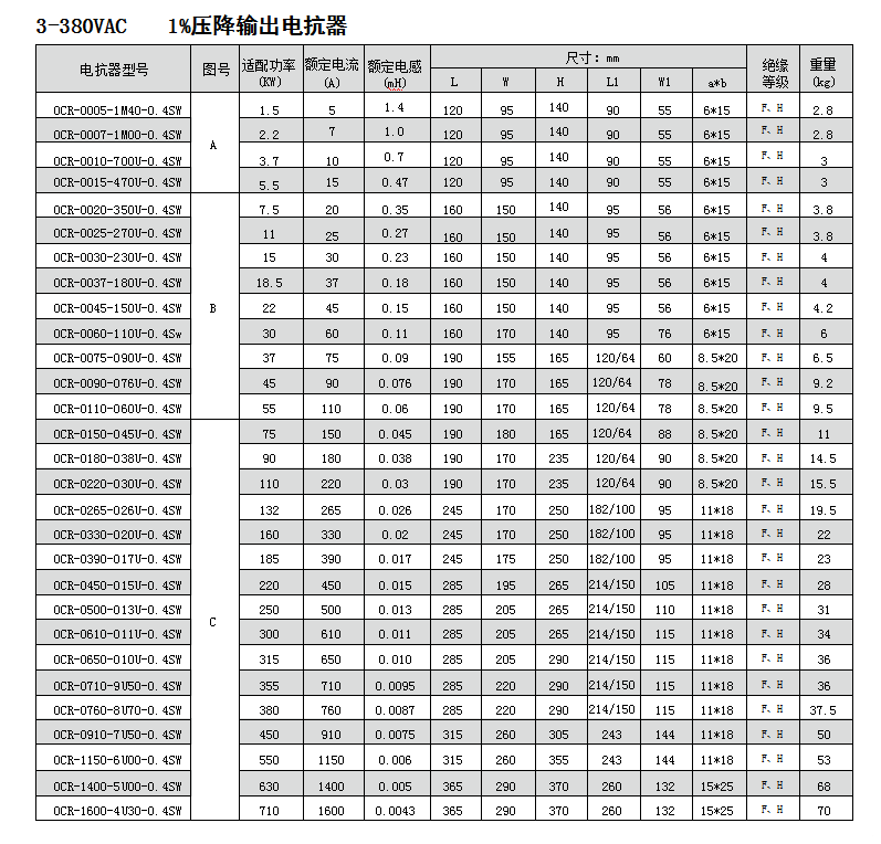 ? ? ?安裝在變頻器輸出端,用于限制變頻器與電機連接電纜的容性充電電流,鈍化變頻器輸出的PWM波的電壓上升率。電機電纜長度超過一定值時,建議在變頻器與電機之間插入一個電機電抗器用于補償在長導線時的電容再充電電流。此長度決定于變頻器的額定值以及電機電纜的類型。