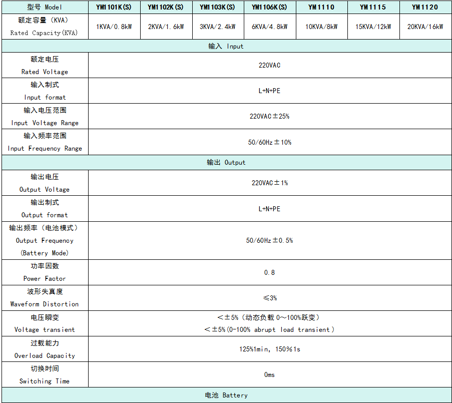 YM系列單進單出UPS完全滿足從0到100%負載的躍變,而無需切換到旁路,并保證輸出穩定可靠。